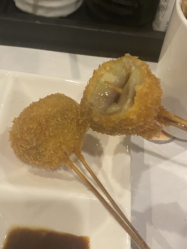 串揚げをビールできゅっといただくのもおいしいし、焼酎ロックでいただくのもまた格別です。